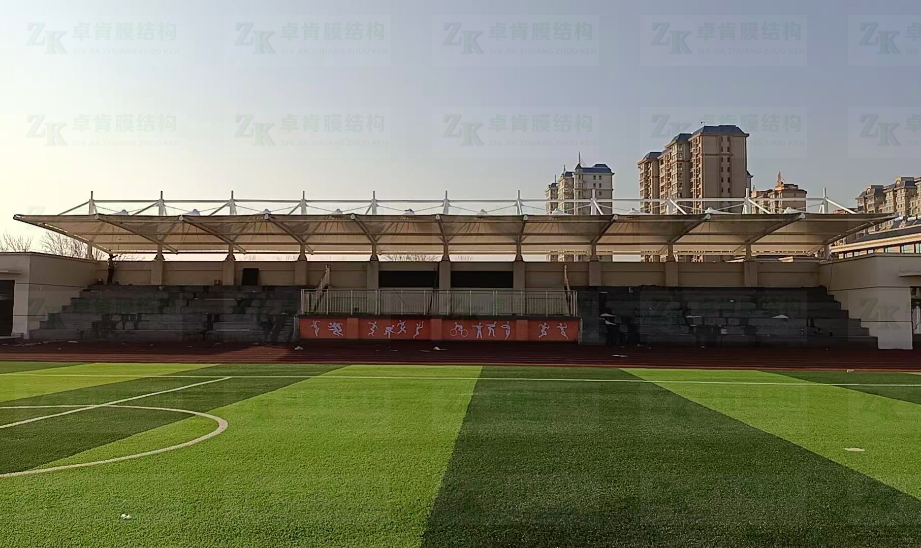 操场看台:用于体育比赛或大型活动,膜结构看台的遮阳功能能为观众提供舒适的观赛体验。