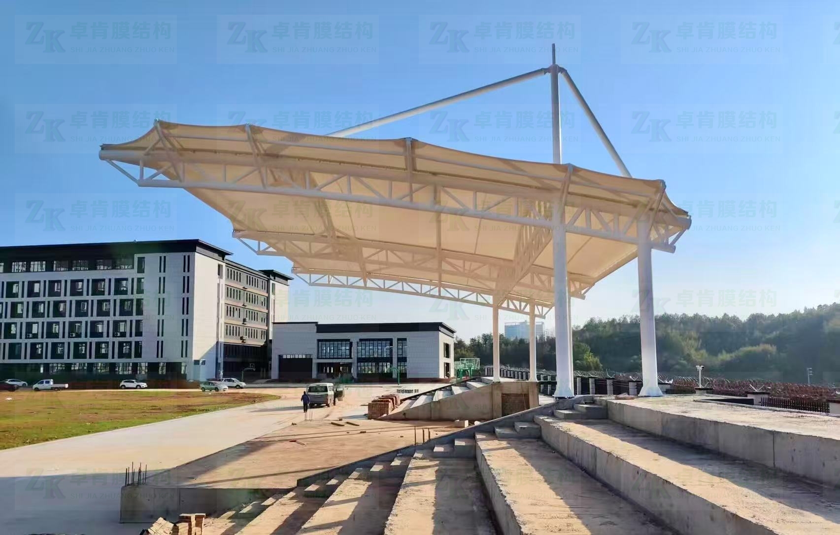 江西赣州职业技术学校膜结构主席台竣工,膜结构主席台在现实生活当中已经成为广泛采用的一种建筑,这样的膜结构建筑究竟如何?他们有哪些特点?今天卓肯小编为您答疑解惑。