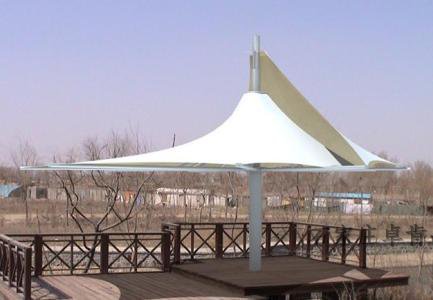 张拉膜结构的独特曲面外形使其具有qiang烈的雕塑感。膜面通过张力达到自平衡。负高斯膜面高低起伏具有的平衡感使体型较大的结构看上去像摆脱了重力的束缚般轻盈地漂浮于天地之间。无论室内还是室外这种雕塑般的质感能令人感动。
